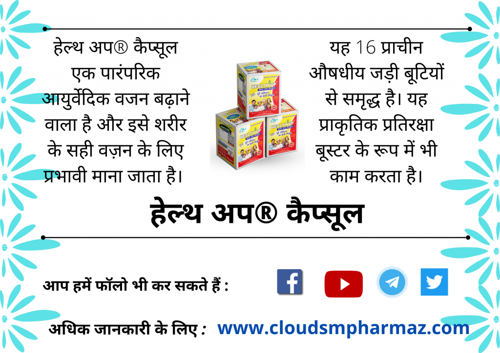 हेल्थ अप® कैप्सूल एक आयुर्वेदिक वज़न बढ़ाने वाला है जो कार्बनिक जड़ी बूटियों के एकोनेटेड मिश्रण से बना है। यह Read more